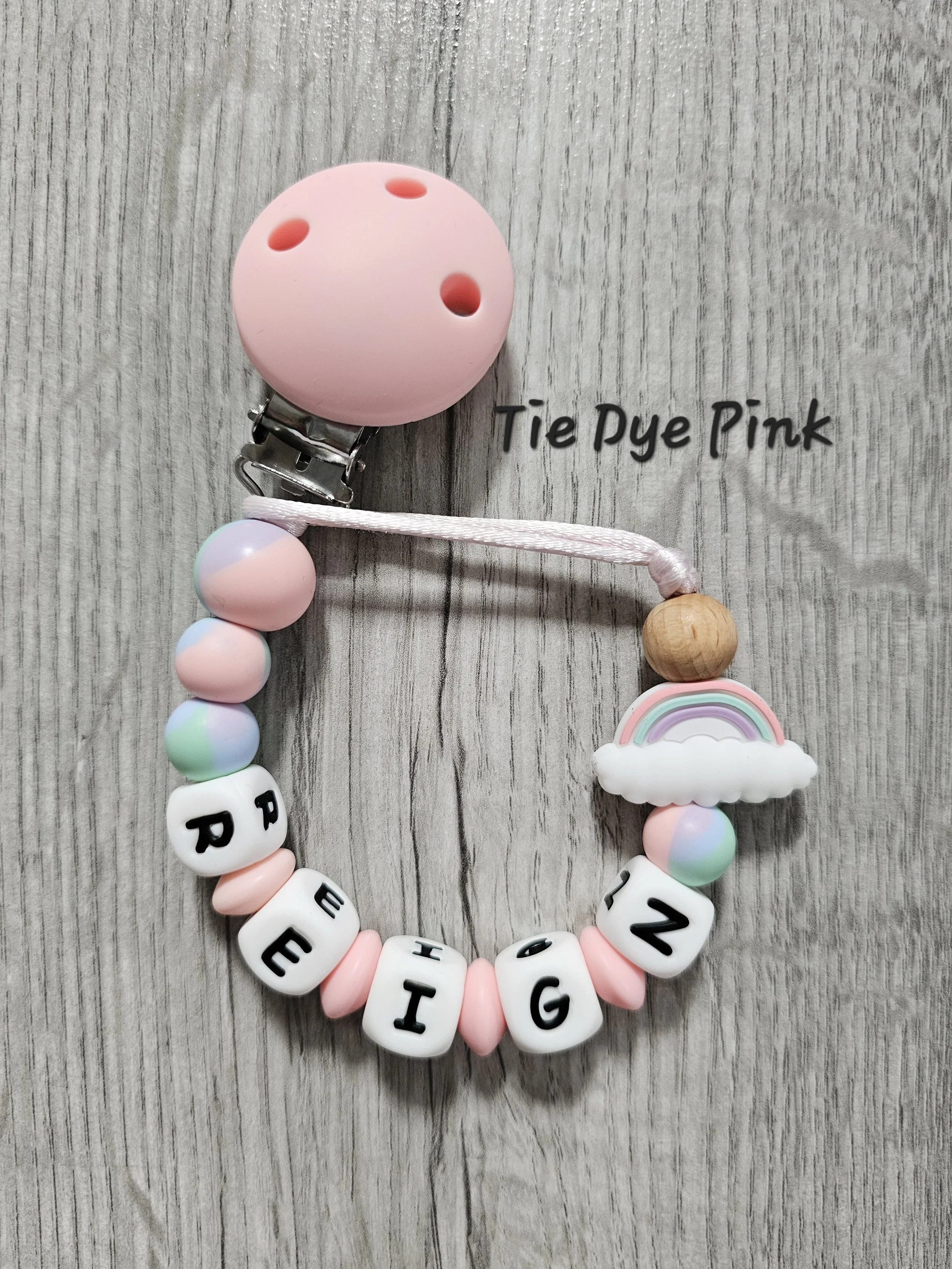 We are happy to personalise your Rainbow Cloud dummy clip up to maximum 10 letters in white letter blocks and maximum 7 letters in pink letter blocks. Also design will be adjusted if more letters than on a picture you choose required. Dummy clip CANNOT exceed the safe length of 22cm! If you don't want personalisation please leave blank in a NAME box. Letter blocks will be replaced with matching colour round ball beads.